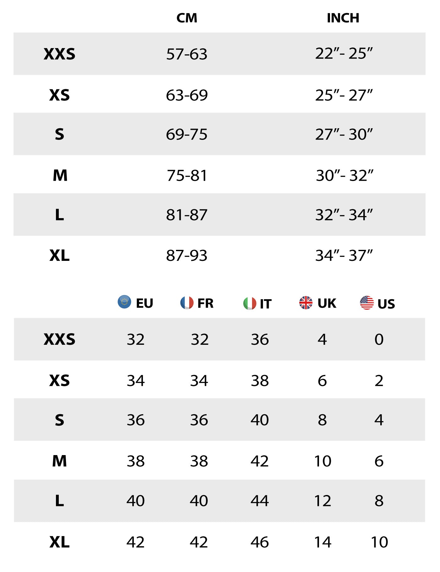 This size guide applies to all women's bottoms: jeans, pants, shorts, joggers, leggings and skirts.
